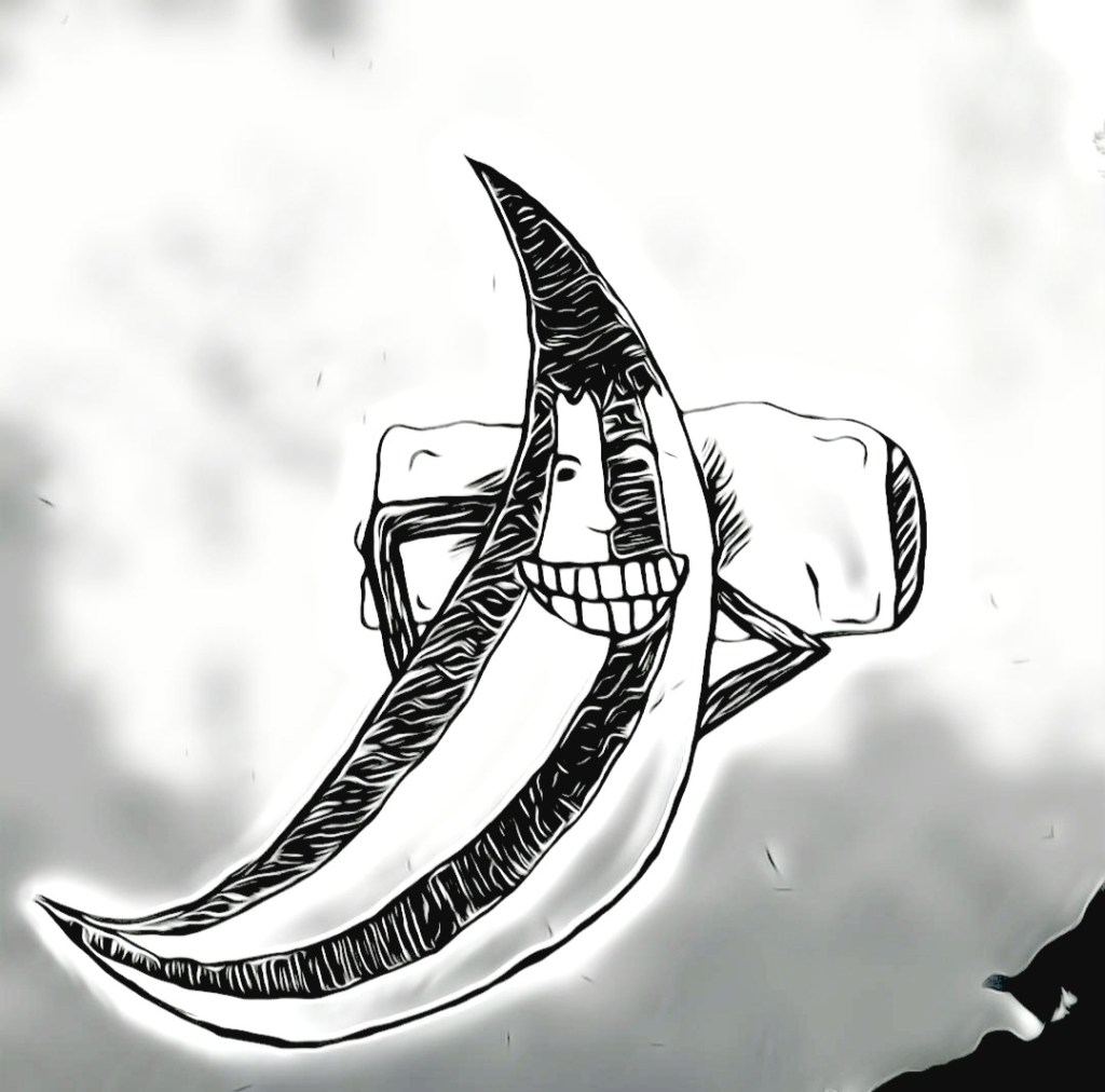 Another funny sketch which turned out into something I ended up spending hours on editing. Originally done the main shape as a automatic drawing, And decided to keep it. Turning into a kind of banana man with a cheeky grin.